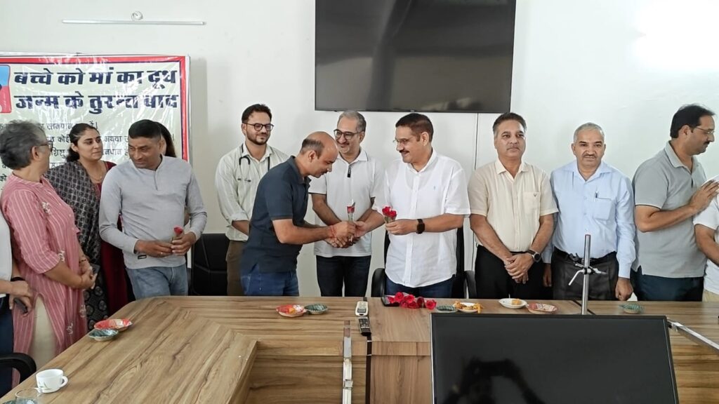 अंब ( प्रशांत शर्मा)— सिविल अस्पताल अंब के ब्लॉक मेडिकल ऑफिसर (BMO) डॉ. राजीव गर्ग को प्रमोशन मिला है। अब वे हेल्थ एंड फैमिली वेलफेयर ट्रेनिंग सेंटर, छैव (कांगड़ा) में बतौर प्रिंसिपल सेवाएं देंगे। सोमवार को अस्पताल प्रशासन की ओर से उन्हें बधाई दी गई और विदाई पार्टी का आयोजन किया गया।डॉ. गर्ग ने अंब अस्पताल में 7 साल अपनी सेवाएं दीं। इस दौरान उन्होंने अस्पताल को कायाकल्प में प्रदेश भर में पहला स्थान दिलवाने, अल्ट्रासाउंड मशीन लगवाकर लोगों को घर-द्वार पर जांच की सुविधा उपलब्ध करवाने, तथा अस्पताल की क्षमता 50 से बढ़ाकर 100 बेड तक करने जैसे कई सराहनीय कार्य किए।उन्होंने कहा कि अंब अस्पताल में बिताया गया समय उनके जीवन का बेहतरीन कार्यकाल रहा। साथ ही उन्होंने बताया कि यहां कार्य करने वाले डॉक्टर्स और स्टाफ ने हमेशा ही बेहतरीन सेवाएं दीं और यही कारण है कि अस्पताल लोगों की पहली पसंद बना।इस अवसर पर सीनियर मेडिकल ऑफिसर राहुल कातना, डॉ. आरुषि शर्मा, डॉ. रुपिंदर कुमार, डॉ. संदीप कुमार सहित अन्य डॉक्टर और स्टाफ सदस्य मौजूद रहे।