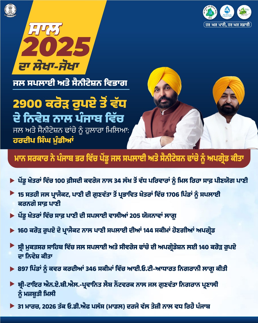 ਜਲ ਸਪਲਾਈ ਅਤੇ ਸੈਨੀਟੇਸ਼ਨ ਵਿਭਾਗ: ਸਾਲ 2025 ਦਾ ਲੇਖਾ-ਜੋਖਾ